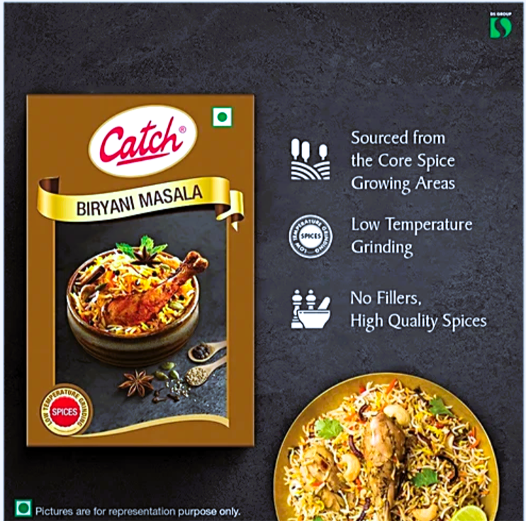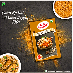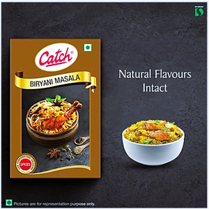 Elevate your biryani experience with Catch Biryani Masala, a meticulously crafted blend of premium spices that captures the essence of traditional Indian cuisine. Sourced from the finest spice-growing regions, this aromatic masala enhances the flavour of your biryani dishes with a perfect balance of heat, fragrance and depth. Prepared using state-of-the-art LTG technology, Catch Biryani Masala ensures the natural oils and flavours of the spices are expertly retained, delivering an authentic and flavourful result every time. Whether you're preparing a classic chicken biryani, a delectable vegetable biryani or any other variation, this masala will transform your dish into a true culinary masterpiece, infusing it with a burst of flavour in every bite. Crafted with care and packed with minimal human contact, Catch Biryani Masala is the ultimate spice blend for the perfect homemade biryani experience.