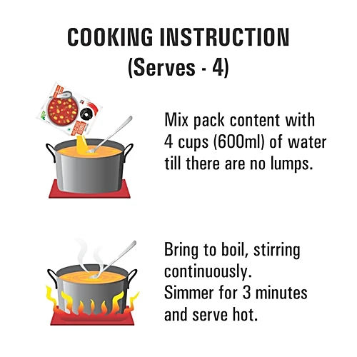 Premium, Sumptuous and Satisfying! Chings premium Cooking Soups quench your craving for soups that are satisfyingly sumptuous. Each soup has a generous serving of the choicest exotic vegetables such as real Shitake mushrooms, French beans, sweet corn, broccoli, cabbage and carrots, that make each sip a memorable experience. Easy to make, these soups need to be simmered with water for just 3 minutes. The range includes Hot Sour, Manchow, Mix Veg, Tomato and Sweet Corn Veg. Great to make for your family or even guests.