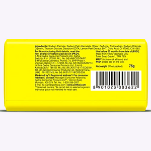 With cinthol lime bathing soap, every bath is a fresh start. Indulge in the goodness of lime with this bathing soap. Its enhanced lemony fragrance revitalizes your senses to give you a fantastic bathing experience. Cinthol lime bath soap has a great citrus scent that lingers throughout the day and leaves your skin feeling fresh and rejuvenated for the entire day. With cinthol lime soap, being alive is awesome. Explore the wide range of refreshing cinthol soaps, available in 4 other variants, namely health , cool, deo and original.