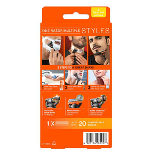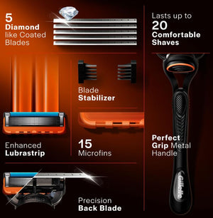 Experience the ultimate in shaving precision and comfort with the Gillette® Fusion Manual Razor. Featuring a 5-blade shaving surface technology spaced closer together, this razor delivers a close, irritation-free shave. The ergonomic handle provides superior control, while the precision trimmer on the back enables you to effortlessly define and shape your beard, achieving a polished, professional look. The enhanced lubra strip ensures a smooth glide for a comfortable shaving experience. Whether you're seeking a clean, close shave or the flexibility to style your facial hair, this versatile razor offers the perfect balance of convenience and performance.