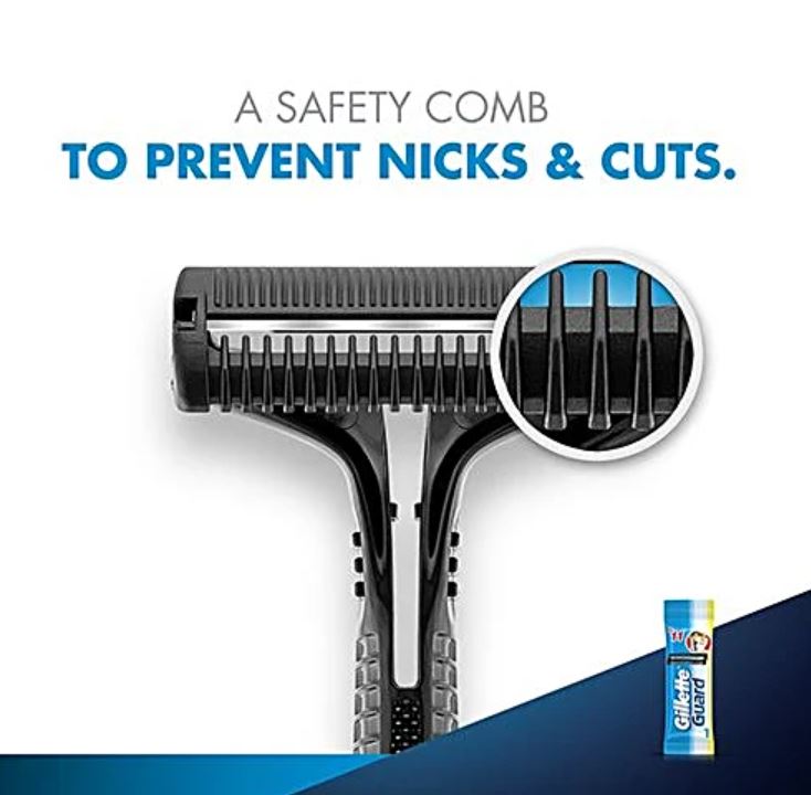 Gillette Guard is a single-blade system lined with a safety comb to prevent nicks & cuts. Superior Grip and Flexible pivoting razor head help better manoeuvre the curves of the face, neck & chin compared to double edge blade.