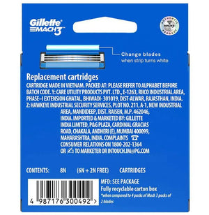 Gillette Mach 3 - Manual Shaving Razor Blades Cartridge, 8 pcs