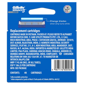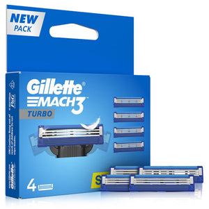 Gillette Mach3 Turbo Shaving Razor Cartridges, 4 pcs