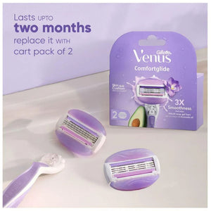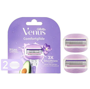 Gillette Venus Breeze is the perfect solution for smooth and easy hair removal. Simply apply water, glide Venus Breeze against the direction of hair growth and then wash and apply your favourite moisturiser! The in-built gel bars with avocado oil for glide and freesia scent contain rich body butters and leave you with your smooth Venus skin in a few minutes. Gillette Venus Comfortglide is ideal for anyone who wants a quick, effective, and comfortable hair removal solution. Perfect for those with sensitive skin, the Venus Comfortglide ensures you're left with soft, smooth skin every time. The in-built gel bars for smooth glide, flexible pivoting head for easy use, three movable blades for fine hair removal, and easy grip handle for shower use make this the ideal hair removal product.