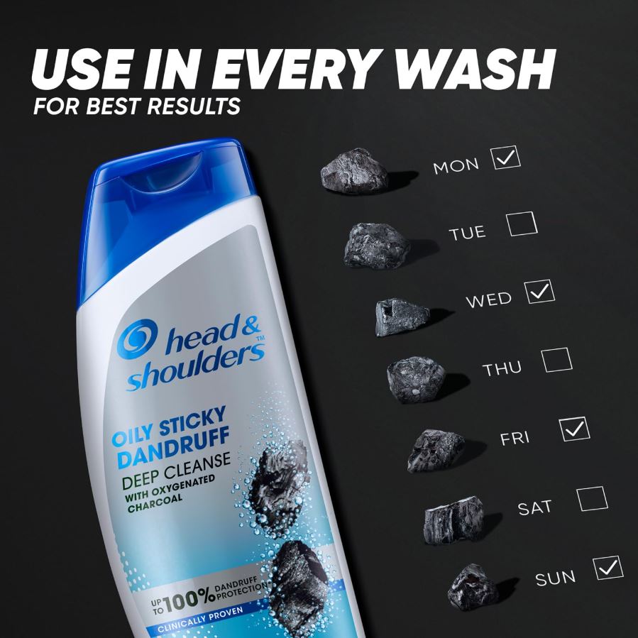 Discover the new Head & Shoulders Deep Cleanse Shampoo, formulated with oxygenated charcoal to draw out impurities and dandruff. It provides up to 100% protection from oily, sticky dandruff^ and is ideal for dandruff-prone, oily scalps, especially for men. Trusted by experts, Head & Shoulders is the dermatologist’s No.1 choice* for effective dandruff care.