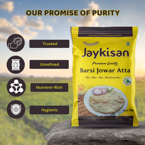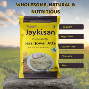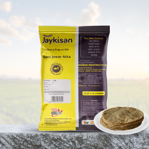 Jaykisan Jowar Barsi Atta (ಜೋಳದ ಹಿಟ್ಟು) is a premium-quality flour, naturally rich in fiber. Hygienically packed and versatile, it is suitable for balanced meals and may help support overall wellness.