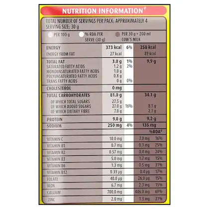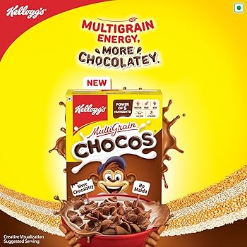 Meet our new Kellogg's Multigrain Chocos! Packed with the goodness of multigrains and completely maida-free, it is now even more chocolatey, making it a treat kids will love. High in protein, fibre, calcium, iron, and essential vitamins like B1, B2, B3, and B6, it offers both taste and nutrition. Made from wheat, jowar, corn, and rice, it contains no added preservatives.