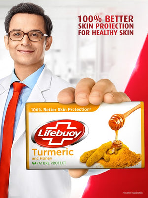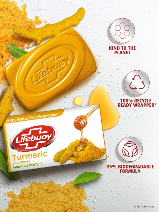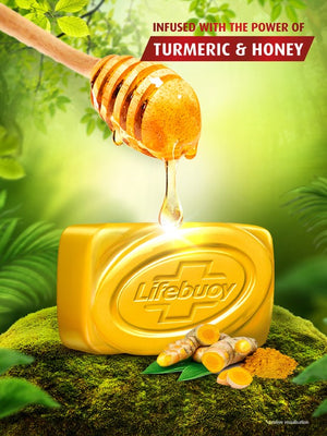 Lifebuoy is a trusted brand, protecting lives since 1895. Lifebuoy is the world’s number 1 selling germ protection soap^. Its advanced silver shield formula helps give 100% stronger protection against germs. Every day we are exposed to heat, dust and germs. These germs may put us at the risk of skin infections like rashes. That’s why you need a natural germ protection soap. Inspired by Mother Nature, Lifebuoy brings to you the New Lifebuoy Turmeric with the power of raw Haldi. Haldi is known in India for its antiseptic and purifying properties. Its natural germ protection formula washes away germs to provide 100% Better Skin Protection. Its unique fragrance blends the power of Haldi to give you a refreshing shower and provides naturals germ protection to your skin. A bath with our antibacterial Honey & Turmeric bar soap will invigorate your senses. The rich foamy lather will penetrate deep into your pores, remove pollutants and germs leaving your skin feeling protected, cleansed and refreshed. Stay protected with Lifebuoy! Stay protected with Lifebuoy 100% better germ protection!
