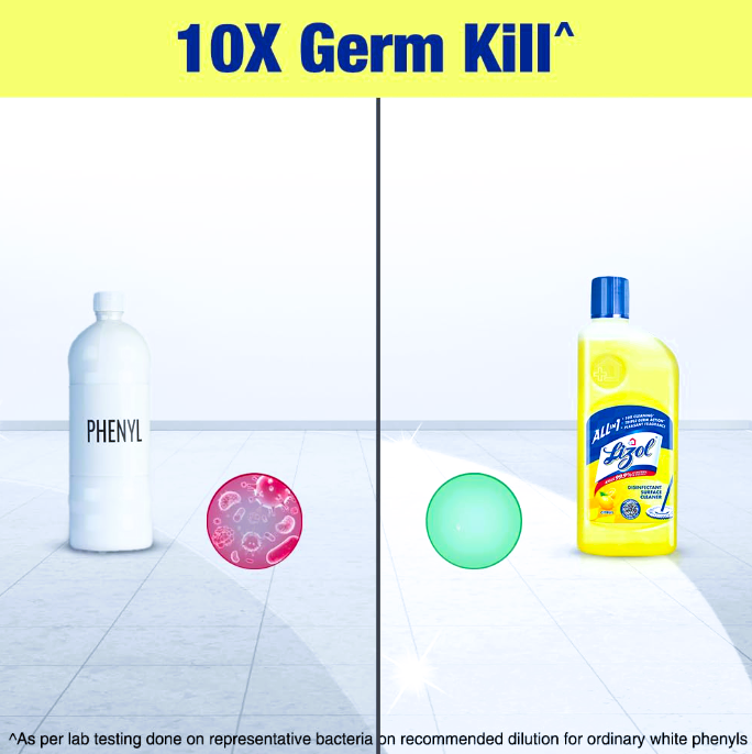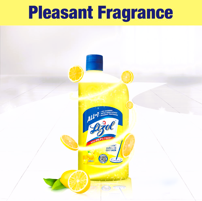 Lizol is India's No.1 Household Cleaning Brand, highly recommended by the Indian Medical Association. Lizol guarantees to kill 99.99% of disease-causing bacteria as well as germs while leaving your room smelling fragrant with a wide variety of aromas. Suitable for household with pets.^ This cleaner removes 100 types of Stains & Germs and leaves a Pleasant Fragrance. Available Variants are Pine, Floral, Citrus, Jasmine, Lavender, Sandal and Neem in the sizes: 200 ml, 500 ml, 1L, 1.8L Refill, 2L and 5L. ^Disclaimer: “When used as directed”