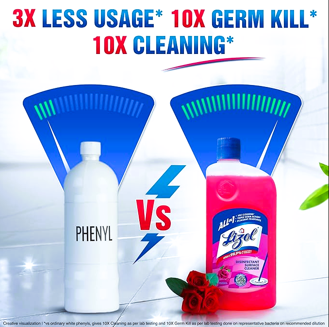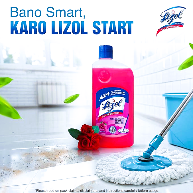 Lizol is India's No.1 Household Cleaning Brand, highly recommended by the Indian Medical Association. Lizol guarantees to kill 99.99% of disease-causing bacteria as well as germs while leaving your room smelling fragrant with a wide variety of aromas. Suitable for household with pets.^ This cleaner removes 100 types of Stains & Germs and leaves a Pleasant Fragrance. Available Variants are Pine, Floral, Citrus, Jasmine, Lavender, Sandal and Neem in the sizes: 200 ml, 500 ml, 1L, 1.8L Refill, 2L and 5L. ^Disclaimer: “When used as directed”