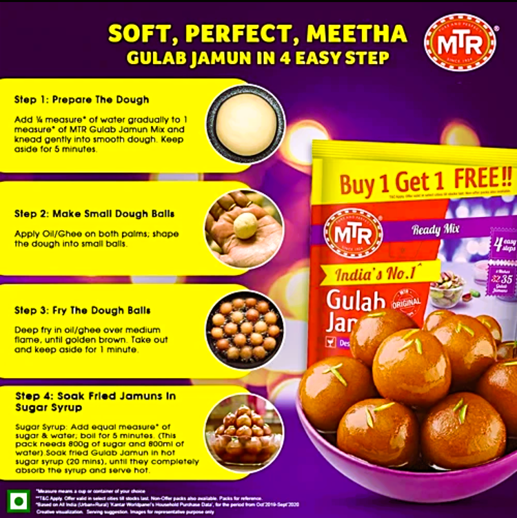 MTR Instant Gulab Jamun Ready Mix is an easy to prepare Gulab Jamun Mix. This dessert mix helps you make deliciously soft and warmly tempting Gulab Jamun, that gives you a heavenly, melt-in-the-mouth experience. With simple step-by-step instructions, you'll bring this hallmark dessert to life instantly. MTR Instant Gulab Jamuns add a delight to your plate during most of the celebrations. MTR gives you a moment to savour the intricate taste of the authentic Gulab Jamuns in minutes. So go ahead, order MTR Instant Gulab Jamun Ready Mix online now!