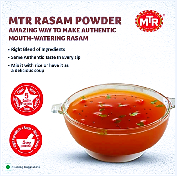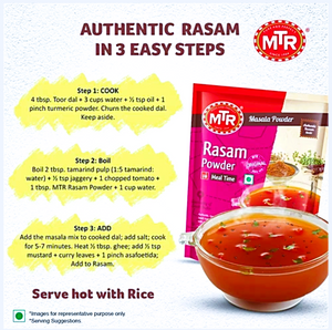 Rasam, the beloved traditional South Indian soup, is a culinary delight that has been cherished for generations. This aromatic and spicy concoction, expertly blended by MTR Foods, is a true taste of the region's rich heritage. Infused with a harmonious medley of spices and red chillies, Rasam offers a heartwarming and invigorating experience, perfect for soothing the senses on chilly nights. Beyond its exquisite flavour, Rasam is also a nutritional powerhouse, brimming with essential vitamins and minerals that aid digestion and promote overall well-being. Its antioxidant-rich composition makes it a guilt-free indulgence for health-conscious food enthusiasts, while its spicy warmth facilitates digestion, making it an ideal accompaniment to hearty meals. Whether enjoyed on its own or paired with steamed rice, Rasam's legacy as a staple in South Indian households is a testament to its timeless appeal and the culinary mastery that goes into its creation.