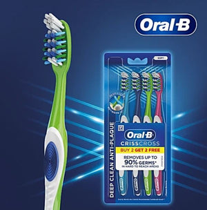Oral-B Criss Cross Toothbrush - Soft, Anti-Plaque, Removes Up To 90% Germs, Family Pack, 4 pcs