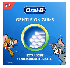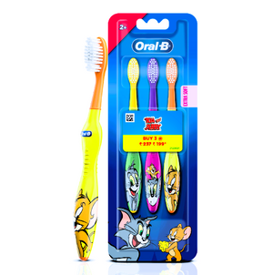 Oral B, the world's #1 dentist-recommended brand, brings you revolutionary brushing solutions with best-in-class technology with proven results for a healthier, Cleaner smile. Oral B Kids Tom & Jerry Extra Soft Toothbrush, Age 2+ has extra Soft, end-rounded bristles for effective cleaning while reaching all the tricky spots. Specially designed to be gentle on young, delicate gums. Easy-to-hold handle designed for small hands, ensuring better control. Make brushing fun with your favorite character Tom & Jerry. Experience a superior Clean and healthier gums with Oral B Kids Tom & Jerry Extra Soft Toothbrush.