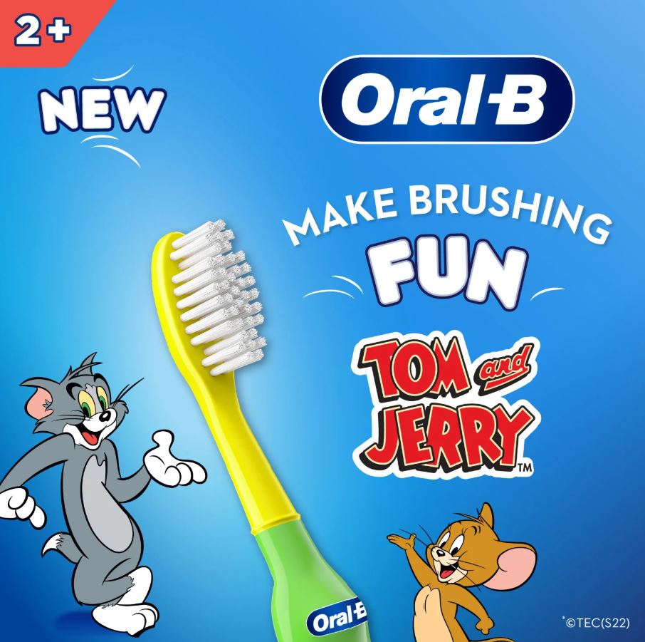 Oral-B Kids Toothbrush - Tom & Jerry, Extra Soft Bristles, Easy To Hold Handle, 2+ Years, 3 pcs