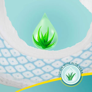 New Pampers complete skin comfort pants have ANTI-RASH* lotion with vitamin E & aloe vera, to keep your baby’s skin protected. Newborn baby diapers containing Lotion with Vitamin E & Aloe vera helps protect your baby’s delicate skin from diaper rash and irritation. Best diapers with Ultra Absorb Core, provide your baby a new type of dryness overnight - breathable dryness. Magic gel locks wetness away to provide up to 12 hours of dryness. The new and improved product design enables a comfortable fit, closer to the baby’s body and a flexible waist band that adapts to baby’s movements for a comfortable fit.