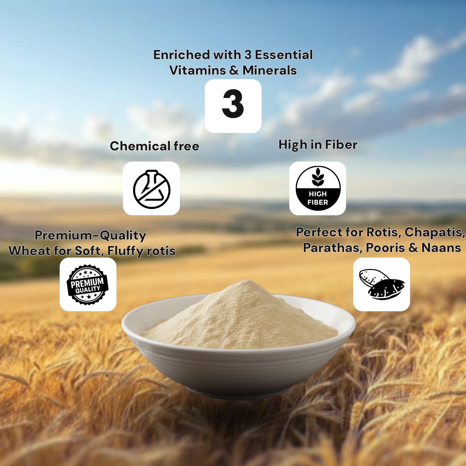 Softness You Can Feel: Made from high-quality wheat, our atta ensures your rotis are incredibly soft and fluffy, making mealtimes a delight.