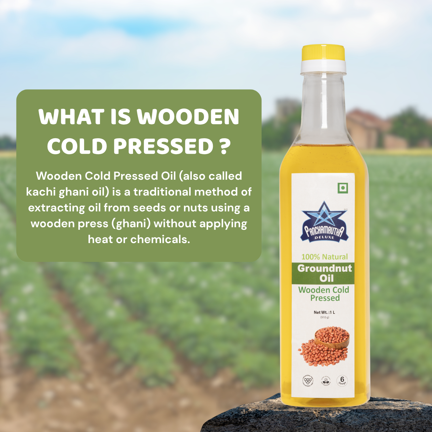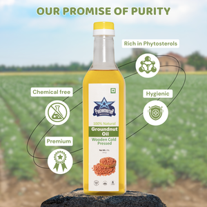 Bring the natural goodness of wooden cold-pressed oil to your kitchen with Panchamrutha Deluxe Groundnut Oil. Our groundnut oil is different from refined oils. We use a gentle, cold-press method to make sure it keeps its natural nutrients and rich flavor. It’s perfect for cooking everything from a family meal to your favorite fried snacks like samosas and pakodas.
