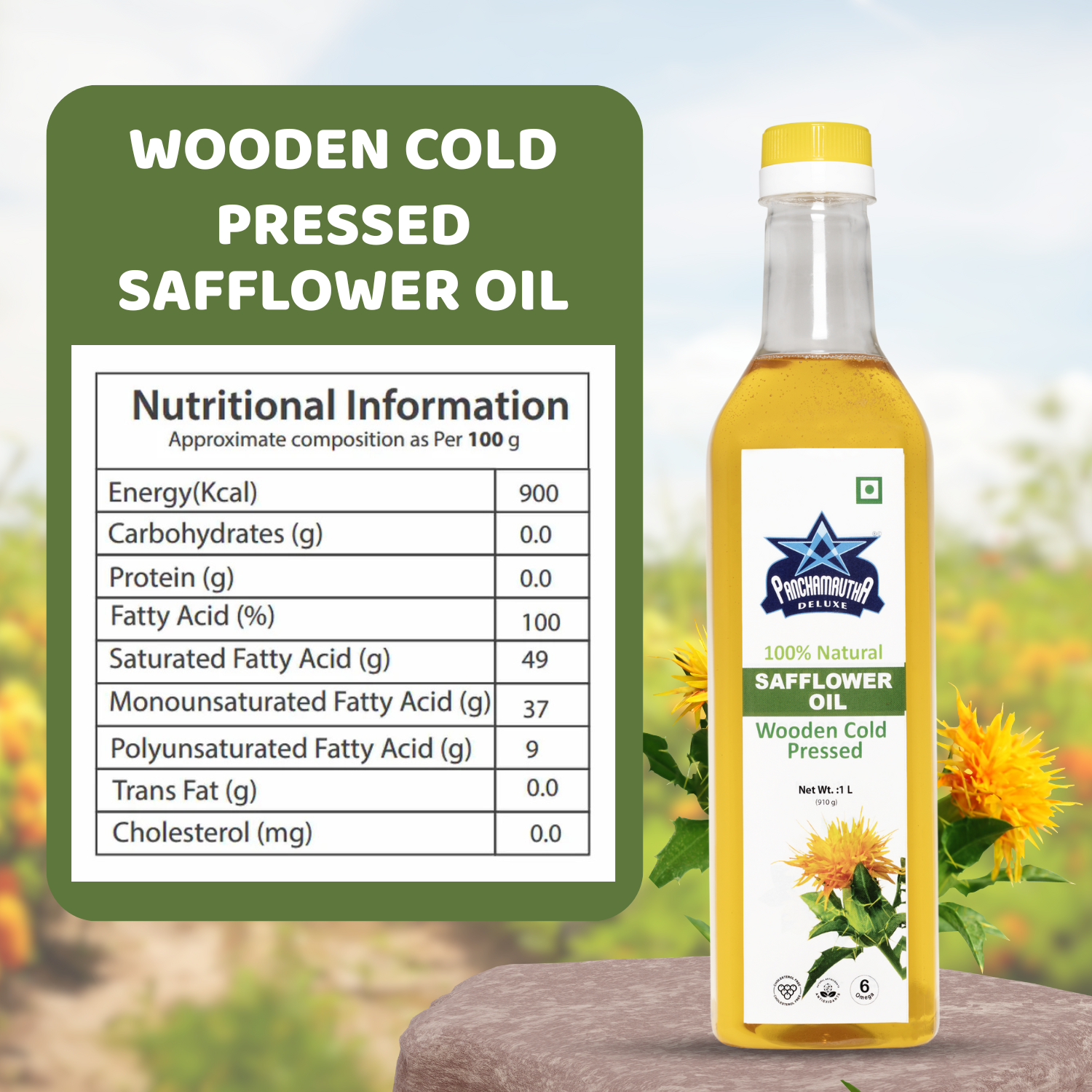SAFFLOWER OIL ಕುಸುಬಿ ಎಣ್ಣೆ COLD PRESSED, PANCHAMRUTHA DELUXE