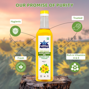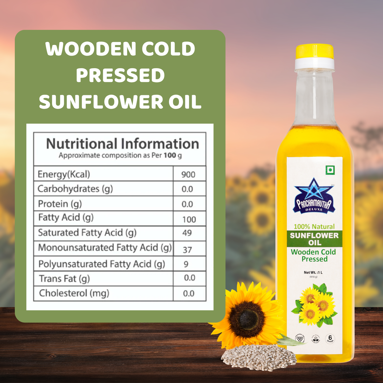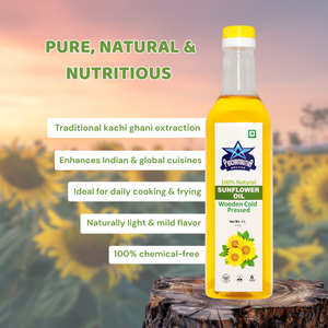 Bring the natural goodness of cold-pressed oil to your kitchen with Panchamrutha Deluxe Sunflower Oil. Our oil is different from refined oils. We use a gentle, cold-press method to make sure it keeps its natural nutrients and light flavor. It's a versatile oil that's perfect for everything from stir-frying to baking.