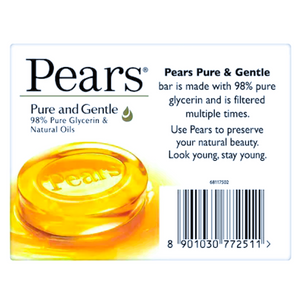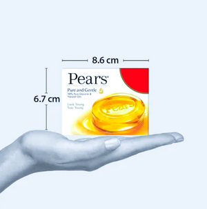 There's nothing like knowing that your skin is soft, smooth and glowing. With the right products, you can have that feeling every single day, starting with your cleansing routine. Pears understands this and brings to you its heritage product - the original glycerine soap, Pears Pure & Gentle Bathing Bar. With 100% more glycerine, Pears Pure & Gentle mild soap bar, cleanses your skin for visibly glowing, brighter skin, every time you shower. This bathing bar with glycerine helps preserve the moisture of your skin and keeps it soft, smooth and glowing. Pears' gentle formula has 0% Parabens and is mild on the skin. Pears Soap Bar also helps wash away germs. Just rub the Pears bar between your hands and massage rich creamy lather over your face and body before rinsing away thoroughly. Pat dry. For best results, use twice a day, morning and evening. Pears Pure & Gentle Bathing Bar is packed in 100% recyclable cartons, our initiative towards being environmentally friendly. Explore the entire range of Pears Pure & Gentle Body Wash & Liquid Hand Wash that are 100% soap Free, pH balanced and dermatologically tested. Add the Pears Range to your beauty regime to see for yourself.