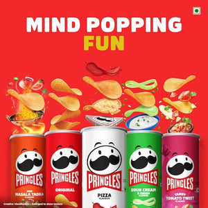 Pringles brings to you Pizza Flavour Potato Chips. A perfect snack when you are craving a tangy snack. It makes a perfect alternative for when you are craving a pizza. Everyone loves pizza and potatoes, and we bring to you a combination of both. Serve it at your parties, and everyone will love and enjoy it. It is an instant light crispy pizza potato chip. Now enjoy pizza just right out of the pack without having to wait for it. It has an irresistible taste and is seasoned from edge to edge for a perfect flavour in every bite.