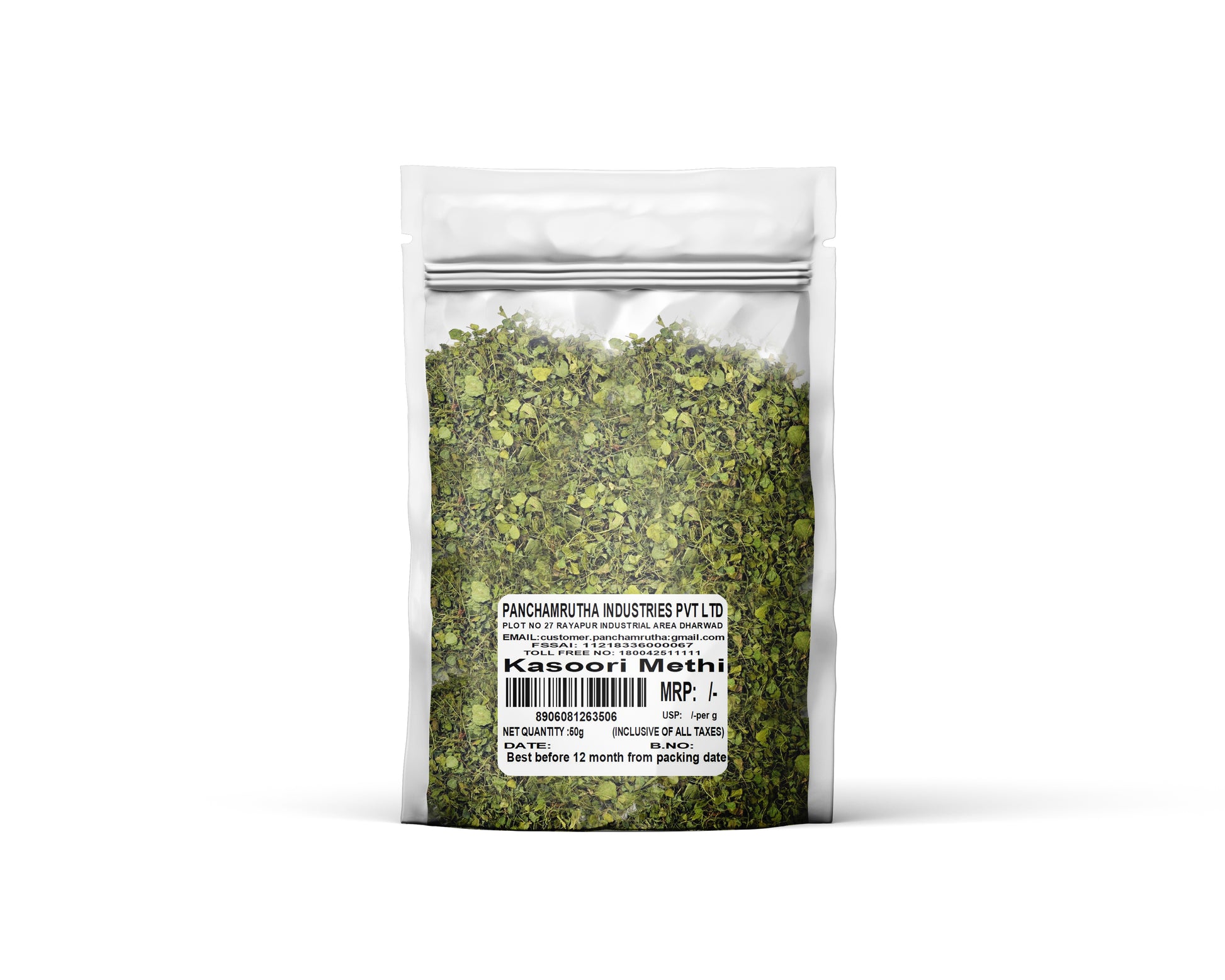 Elevate your culinary experience with Panchamrutha - Kasoori Methi, a premium-quality dried fenugreek leaf that adds an unforgettable exotic flavour to your dishes. Sourced from the finest ingredients, this aromatic herb is not only hygienic and flavourful but also incredibly versatile. Whether you're preparing traditional Indian curries, hearty soups, or international delicacies, a sprinkle of Panchamrutha Kasoori Methi will instantly elevate the taste and aroma, transporting your senses to a world of culinary delight. Simply crush the leaves between your fingers and sprinkle them over your food to experience the burst of flavour and the unique savoury notes that will make your dishes truly unforgettable.