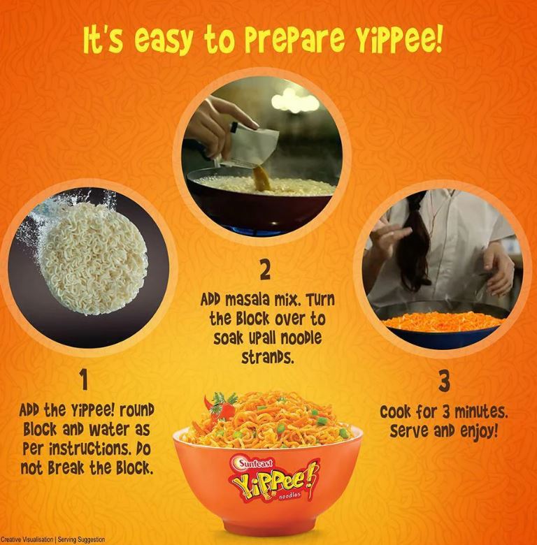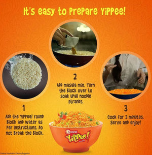 Looking for a snack filled with magic, masala and masti? Then Sunfeast YiPPee! Magic Masala Noodles is just what you were looking for. Every bite will simply dazzle your taste buds. Made with the finest ingredients and the goodness of real vegetables. YiPPee!'s a delicious mix of Indian spices that gives it the much-loved magical masala taste. The goodness of vegetables adds more texture and a healthy dash of colour to every bite of Noodles! Super quick, deliciously tasty and utterly wholesome! The kids will love it and so will you! A delicious noodle treat loaded with nutrients such as Calcium, Iron, Vitamin C, Folic Acid and Protein, all of which are essential for maintaining good health.