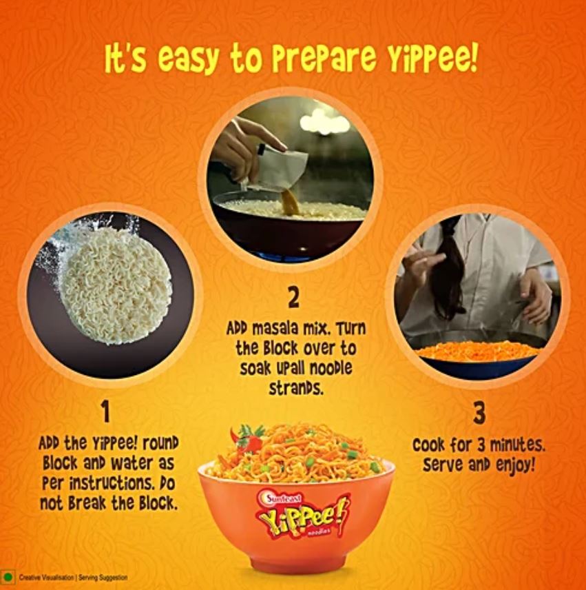 Looking for a snack filled with magic, masala and masti? Then Sunfeast YiPPee! Magic Masala Noodles is just what you were looking for. Every bite will simply dazzle your taste buds. Made with the finest ingredients and the goodness of real vegetables. YiPPee!'s a delicious mix of Indian spices that gives it the much-loved magical masala taste. The goodness of vegetables adds more texture and a healthy dash of colour to every bite of Noodles! Super quick, deliciously tasty and utterly wholesome! The kids will love it and so will you! A delicious noodle treat loaded with nutrients such as Calcium, Iron, Vitamin C, Folic Acid and Protein, all of which are essential for maintaining good health.