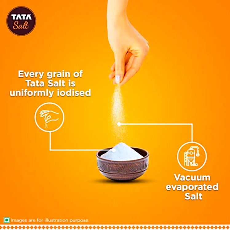 Desh ki Sehat Desh ka Namak! Now celebrating 40 years of trust, Tata Salt has pioneered Indias largest vacuum evaporation technology. Untouched by hand, Tata Salt offers an assurance of iodine. With vacuum evaporation technology, Tata namak offers a hygienic alternative to your regular table salt. It contains the requisite amount of iodine, which is an essential dietary nutrient for humans. Iodine is required for normal growth, thyroid, and brain function. Add the goodness of Tata Salt to your dietary intake and make your meals delicious and nourishing. *It is generally accepted that iodine helps in the mental development of children.