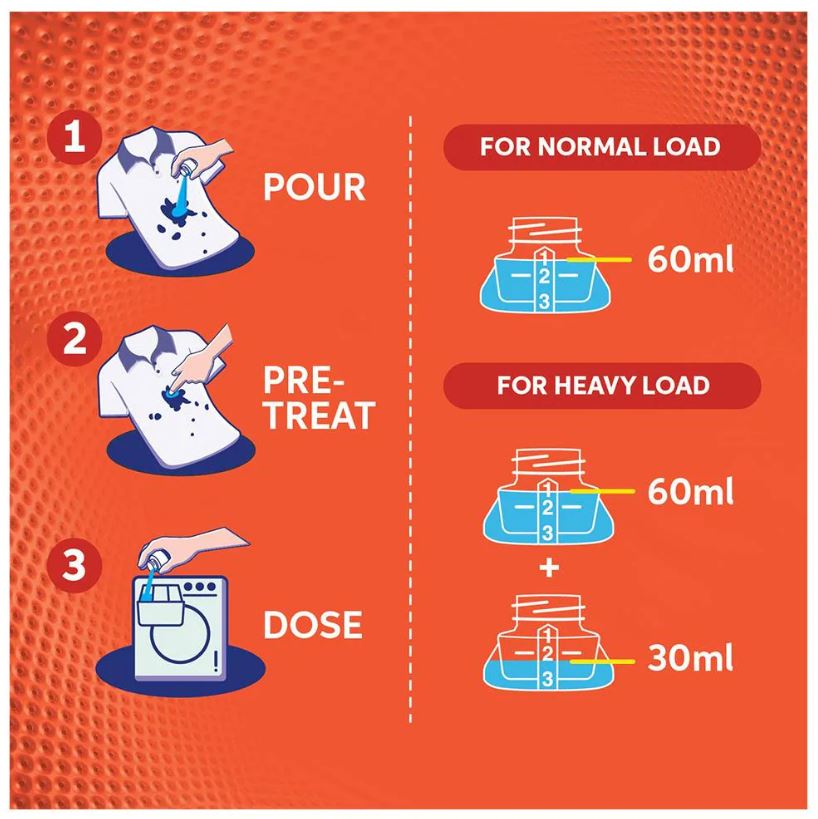 Tide Matic Front Load Liquid Detergent is convenient as completely soluble in water. It helps you clean your clothes easily while giving them a pleasant fragrance. It removes tough stains easily and protects colours. This liquid detergent is designed especially for automatic washing. Being a liquid detergent, it dissolves quickly in high water level environments of washing machines. This detergent is safe on all fabrics, wool, cotton, silk, blends, and all other fabrics.