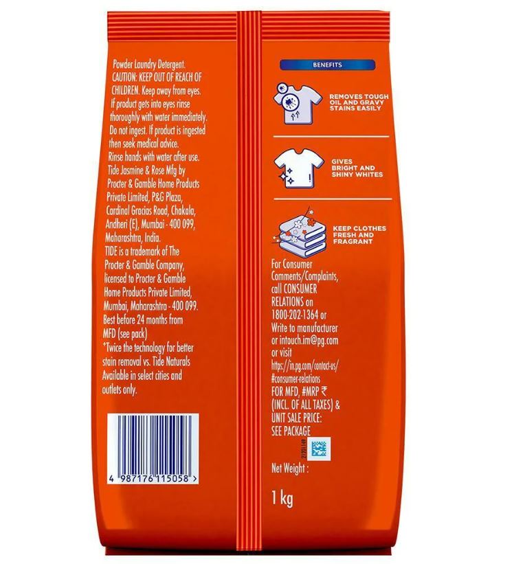 New Tide Plus Double Power detergent powder has Stain Magnets, which can remove the toughest of stains to give you Stainless Whites. Tide Plus’s improved formulation and enzyme system has been specially designed to beat tough kitchen stains and give you outstanding whiteness. We often get food stains while cooking, when kids eat, while spending time with family. Tide Plus Double Power has easy dissolution in water and great foaming properties which removes stains easily. It is available in a range of amazing iconic fragrances - Jasmine & Rose and Lemon & Mint. The product works on both white and coloured clothes. Tide's Double Power refers to the superior formulation vs. Tide Naturals. Tide, a unit of Procter and Gamble, is the World’s Oldest and Most Trusted Detergent brand and is the Market Leader in 23 Countries around the world.