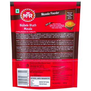 Discover the authentic taste of Karnataka's beloved bisibele bath with MTR's Bisibele Bath Masala Powder. This premium blend of high-quality spices and vegetables delivers the traditional tangy and spicy flavours that make this classic South Indian dish so delectable. Crafted with care, the masala simplifies the preparation process, allowing you to enjoy the rich, aromatic experience of bisibele bath with ease. Pair it with rice, lentils, curd, or raita for a truly satisfying and flavourful meal that captures the essence of Karnataka's culinary heritage. Enjoy the convenience of this versatile masala while savouring the authentic taste that has made MTR a trusted name in the food industry.