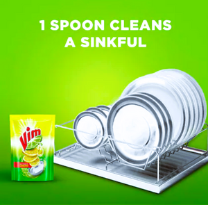 Vim Lemon Dishwash Liquid Gel is a powerful grease-cutting formula enriched with the natural goodness of lemons. It easily removes tough grease, oil, and food residues, leaving utensils sparkling clean and fresh. Just one drop produces rich lather, ensuring excellent cleaning with minimal effort and water. Safe for all types of cookware including stainless steel, non-stick, and glassware.