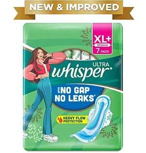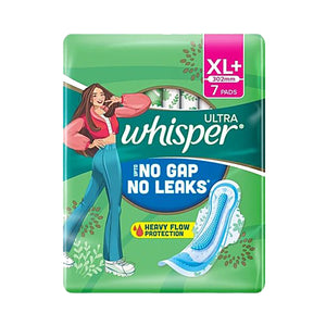 Whisper Ultra Up To No Gap No Leaks Sanitary Pads, XL+, 7 pcs
